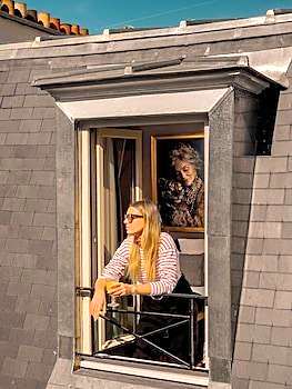 Some of these rooms have a balcony overlooking the Parisian rooftops or a flowery terrace overlooking the courtyard, or are larger and include a sofa.